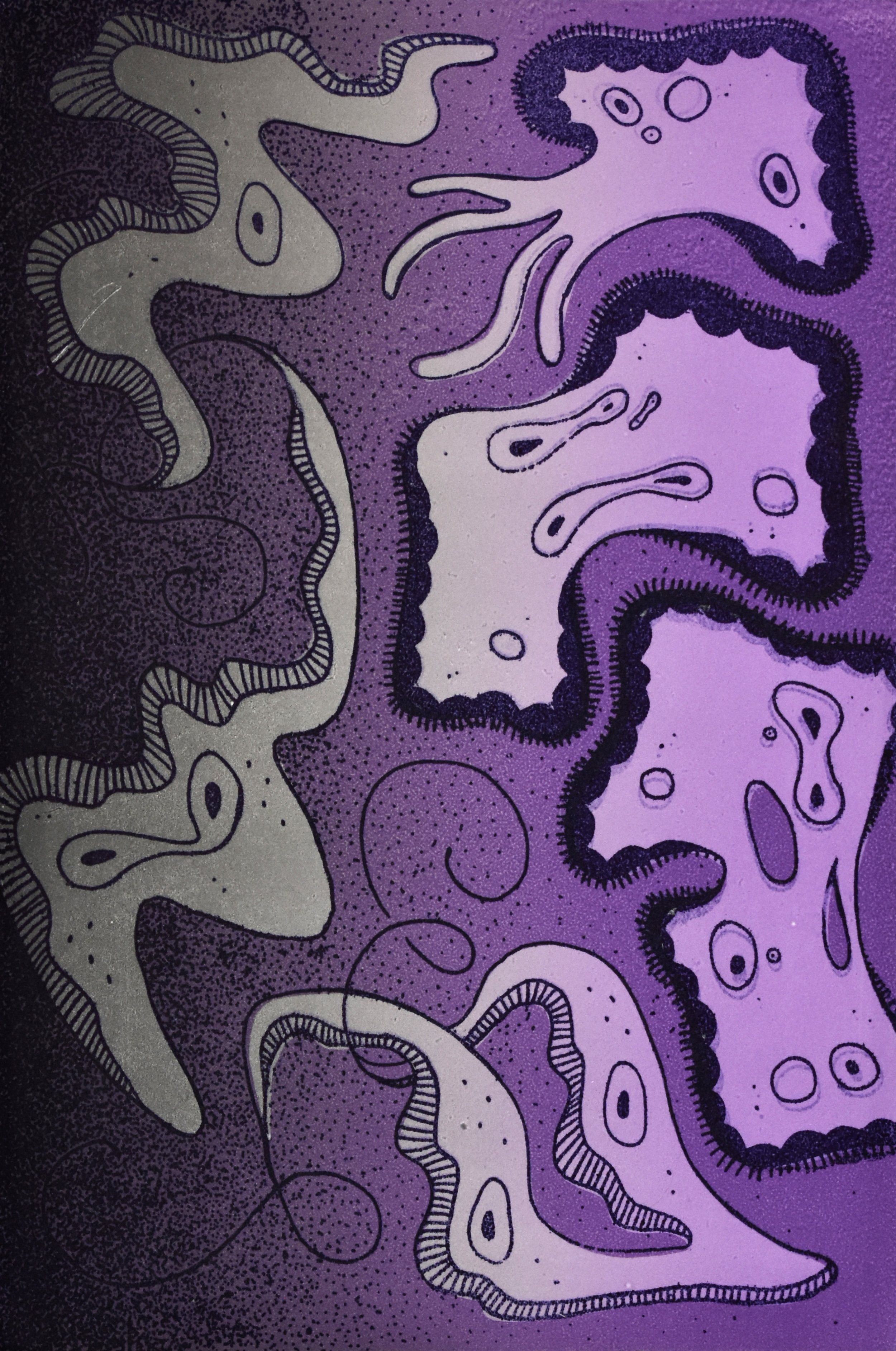 Pronto print and monoprints with oil-based ink on Rives BFK paper