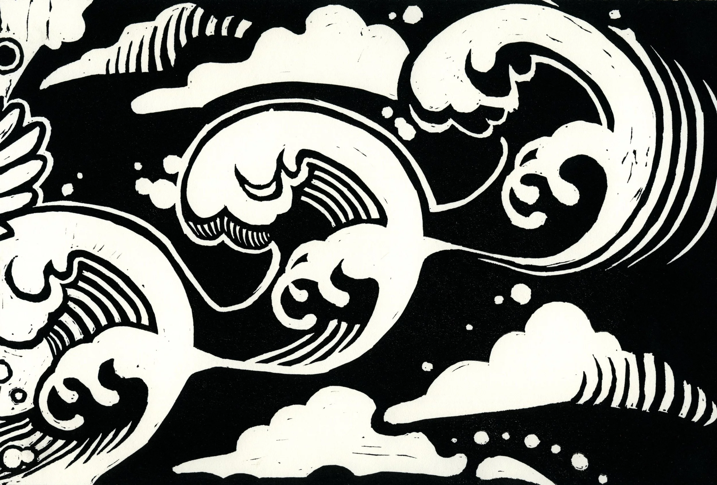 Carved Japanese Vinyl printed with oil-based ink on Rives BFK paper