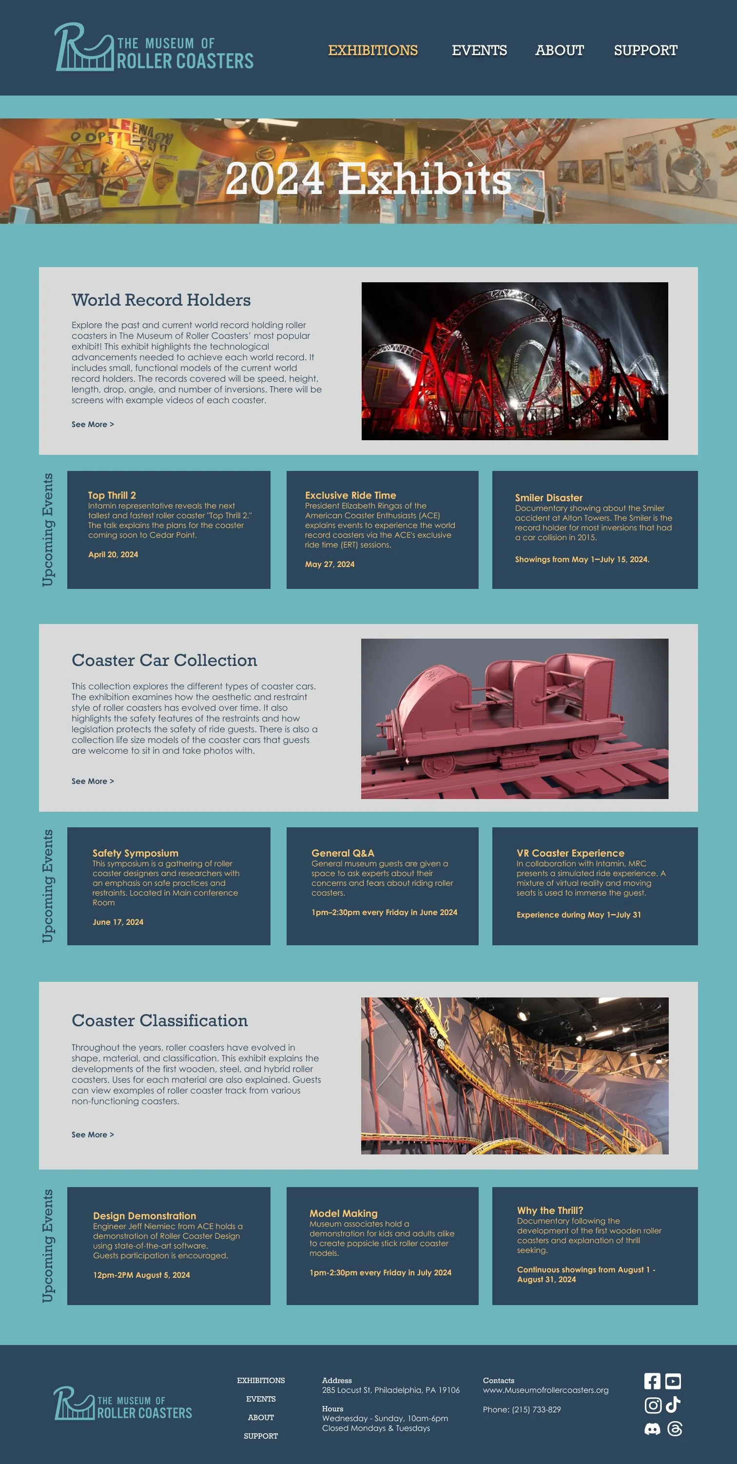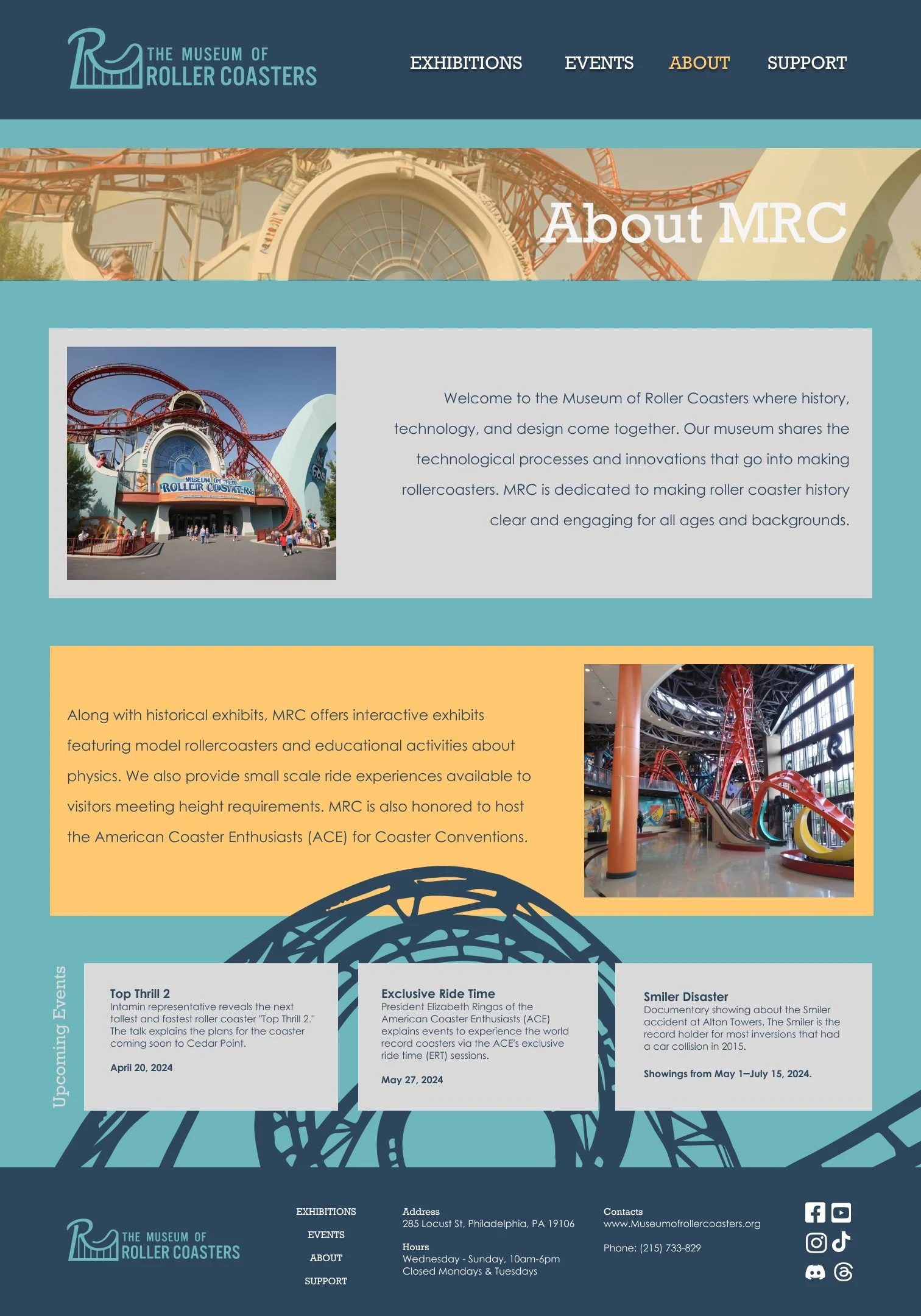 This website design was created for an Appalachian State University graphic design class. The task was to create a museum, then develop branding and a website for it. The website layout was designed in Figma.
